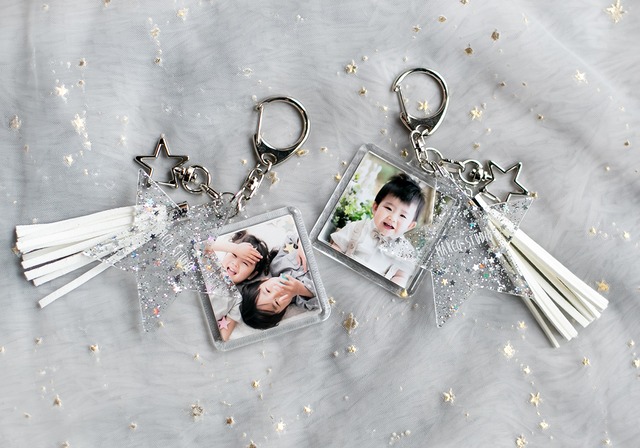 サイズ:50mm × 50mm 両面タイプ(写真が2枚入ります) ※星とタッセルのチャームはついておりませんのでご注意ください。